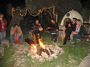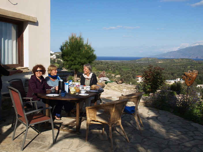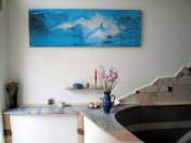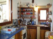 Dieses Appartement besteht aus einer offenen Küche mit Wohnbereich und Doppelbett, geeignet für 2 Personen, und einem Badezimmer mit selbst gestalteter grosser Badewanne. Ausserdem gibt es einen wärmenden Kaminofen für die Wintermonate. Obwohl dies von der Wohn- und Schlaffläche her unser kleinstes Appartement ist, verfügt es jedoch über die grösste und wohl schönste Terrasse mit Aussendusche, Grill, kretischem Backofen und Feuerstelle. Ein Gong gibt Ihnen "Antwort auf Festos", die minoische Anlage 1km direkt gegenüber. Hier können Sie Ihren Frieden finden und wertvolle Stunden in Stille und Natur verbringen. Bei klarer Sicht erleben Sie einen faszinierenden kretischen Sternenhimmel sowie ein einzigartiges Licht, das mit der Morgen- und Abendsonne seinen Höhepunkt erreicht. ("Messara" bedeutet im minoischen Ursprung "Tal des Lichts").